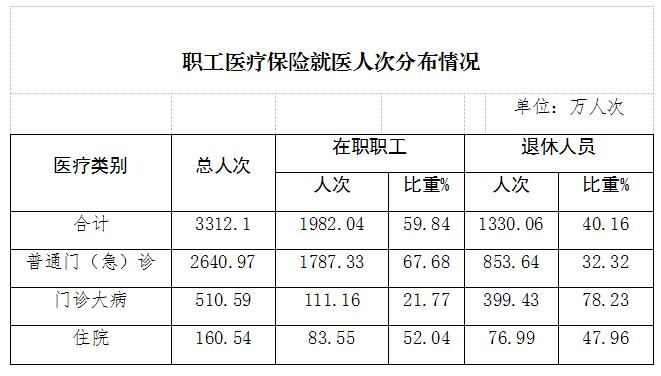 3.享受待遇人次增加。2019年参加职工医保人员享受待遇3312.1万人次,比上年增长17.91%。享受待遇人次中,享受门急诊待遇、门诊大病待遇、住院待遇分别为2640.97万人次、510.59万人次和160.54万人次,比上年分别增长23.8%、-10.41%、51.69%。
