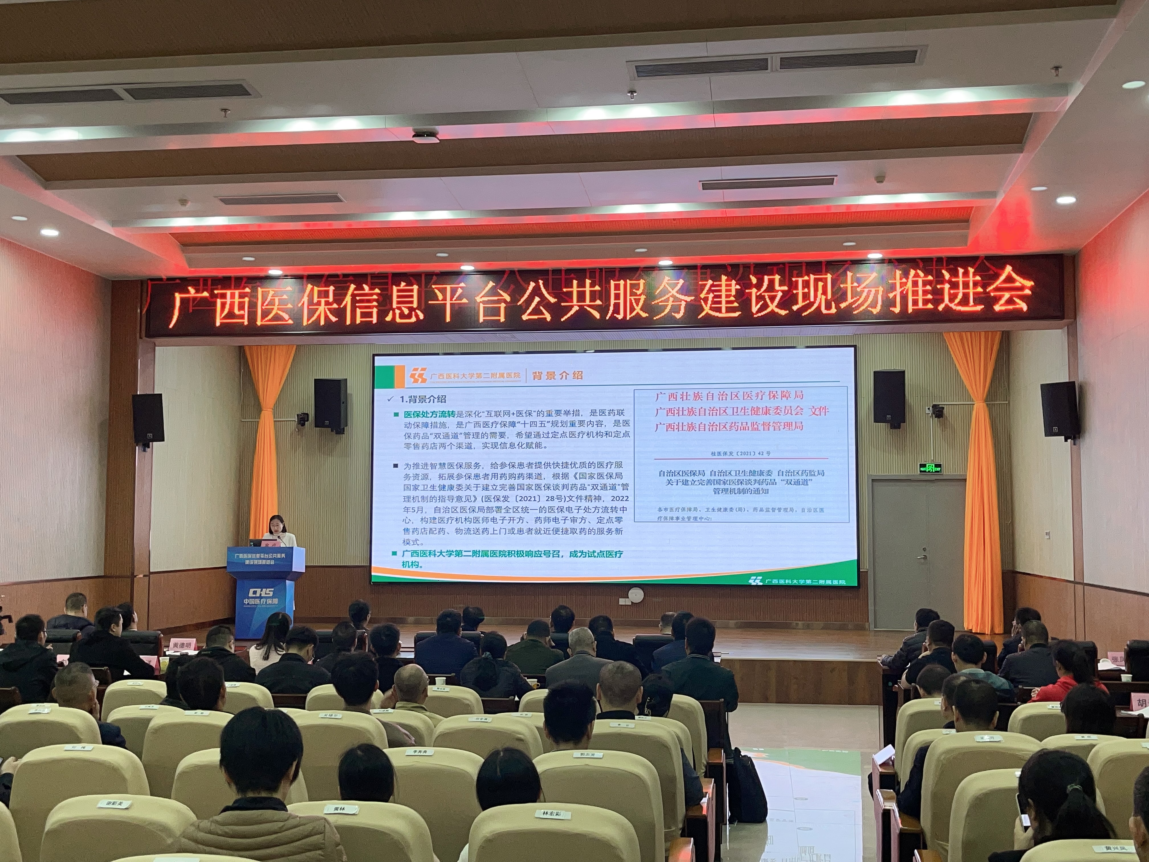 会议邀请了广西医科大学第二附属医院就互联网医院线上问诊、线上开方,实现电子处方流转分享经验,南宁市中医院就医保电子凭证全流程应用、钦州市第一人民医院就电子处方流转建设工作及医保移动支付应用、桂中大药房就电子处方流转建设工作等做经验介绍。